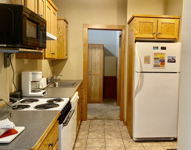 - Full kitchen, dining room, and kitchen bar